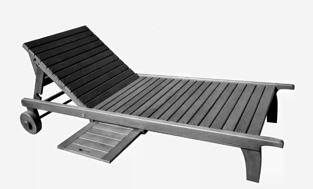 Деревянный шезлонг с выдвижным столиком